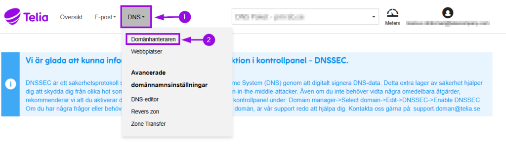 2. Gå till DNS och Domänhanteraren.