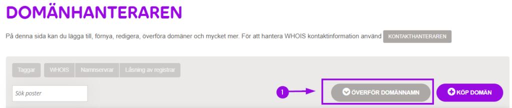 1. Gå till Överför domännamn.